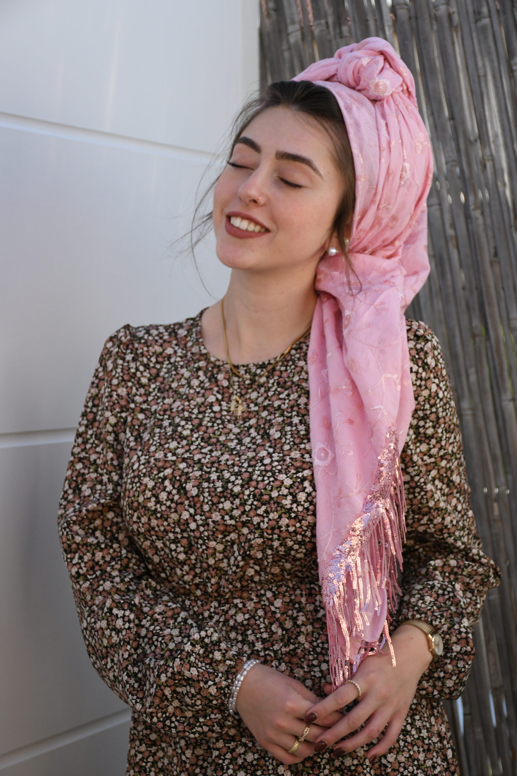 מטפחת מבד כותנה עם רקמת פייטים יוקרתית, כזאת שכיף לקשור ומקפציה כל הופעה!