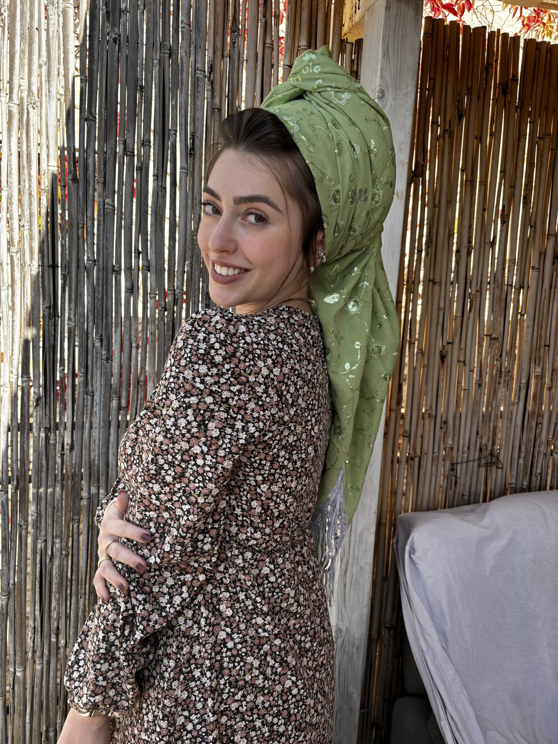 מטפחת מבד כותנה עם רקמת פייטים יוקרתית, כזאת שכיף לקשור ומקפציה כל הופעה!