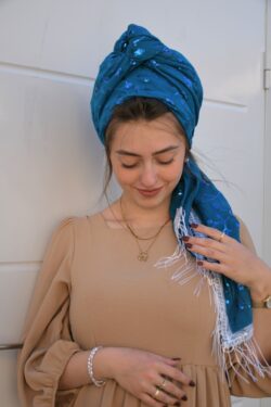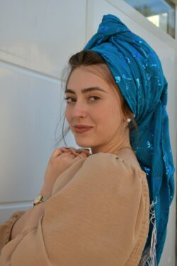 מטפחת מבד כותנה עם רקמת פייטים יוקרתית, כזאת שכיף לקשור ומקפציה כל הופעה!