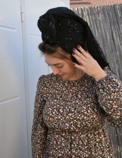 מטפחת מבד כותנה עם רקמת פייטים יוקרתית, כזאת שכיף לקשור ומקפציה כל הופעה!
